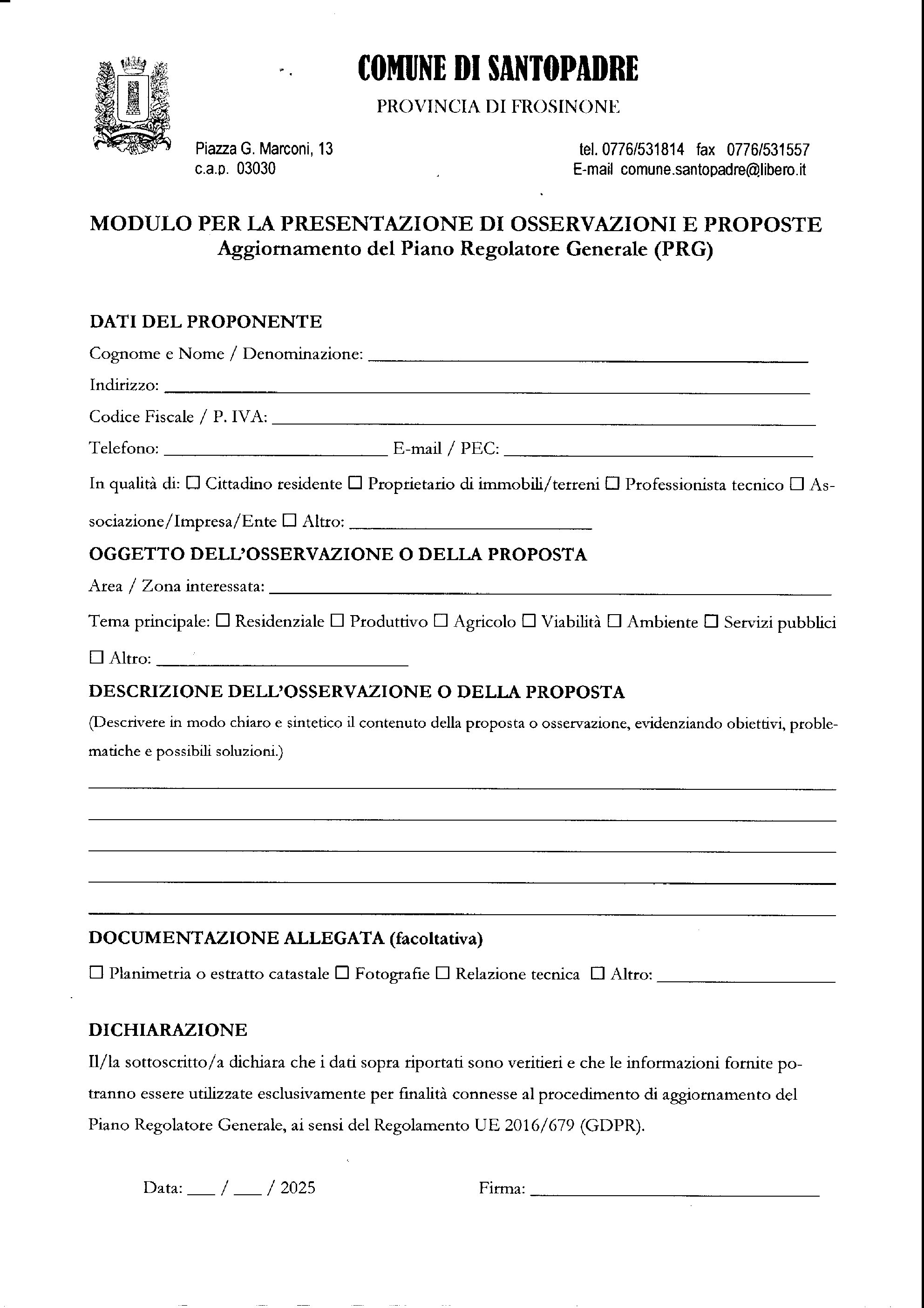Osservazioni: Cittadini e associazioni possono presentare osservazioni e contributi